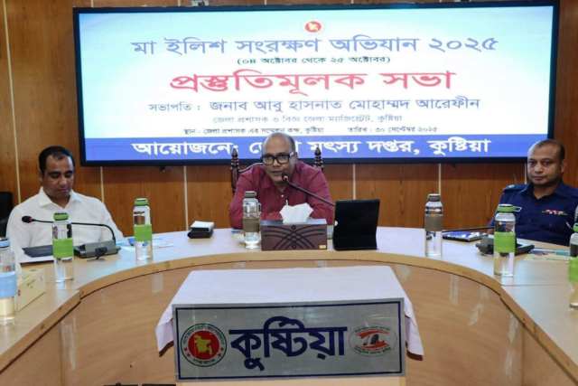কুষ্টিয়া জেলা প্রশাসকের কার্যালয়ের সভাকক্ষে অনুষ্ঠিত হলো “মা ইলিশ সংরক্ষণ অভিযান ২০২৫” উপলক্ষে একটি গুরুত্বপূর্ণ প্রস্তুতিমূলক সভা।